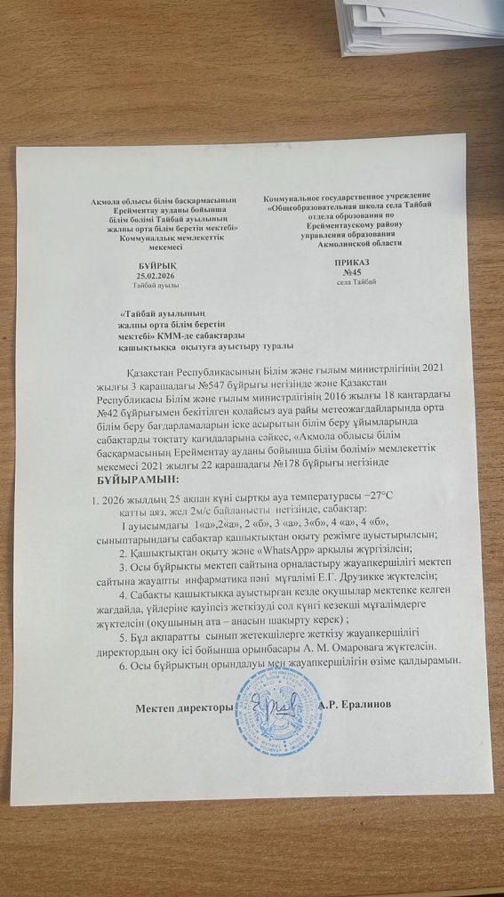 Коммунальное государственное учреждение " Общеобразовательная школа села Тайбай отдела образования по Ерейментаускому району управления образования Акмолинской области"